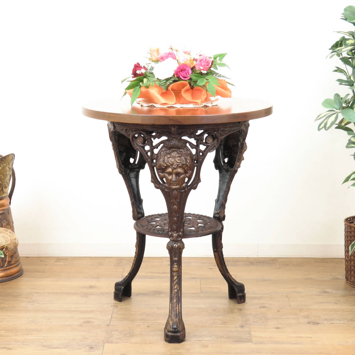 - 《アウトレット品》アイアンの脚がシャビーなテーブル/カフェ/レストラン/パブ/店舗什器/ディスプレイ/インテリア/ガーデニング/AL-2380