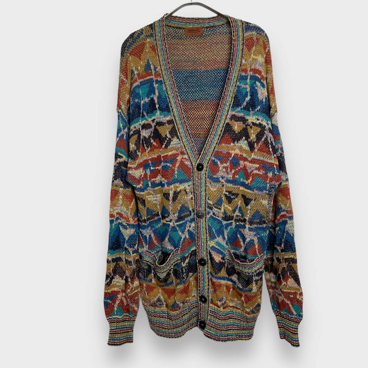 - 送料無料☆MISSONI☆ミッソーニ☆総柄カーディガン☆ロング丈☆イタリア製☆マルチカラー☆サイズ48☆XL相当☆F24M