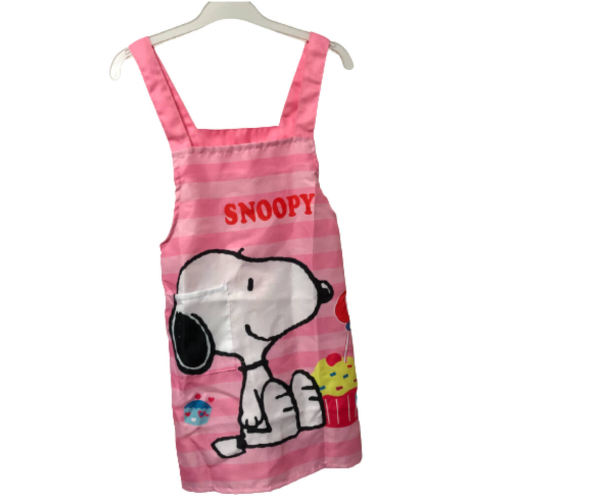- 新品●送料無料 ●スヌーピー エプロン110 女の子 ピンク ポケット有 アイロンいらず