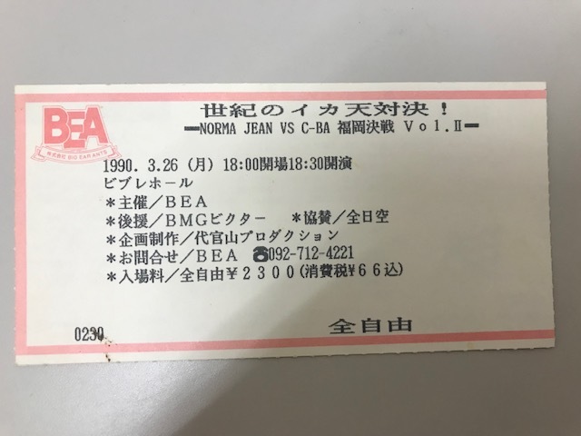 - 送料無料 イカ天 NORMA JEAN/C-BA チケット半券 ノーマ ジーン バンド ticket