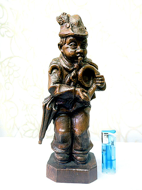 - No41 スペイン製 ホルン奏者 一刀彫 木製インテリア 置物・2406011