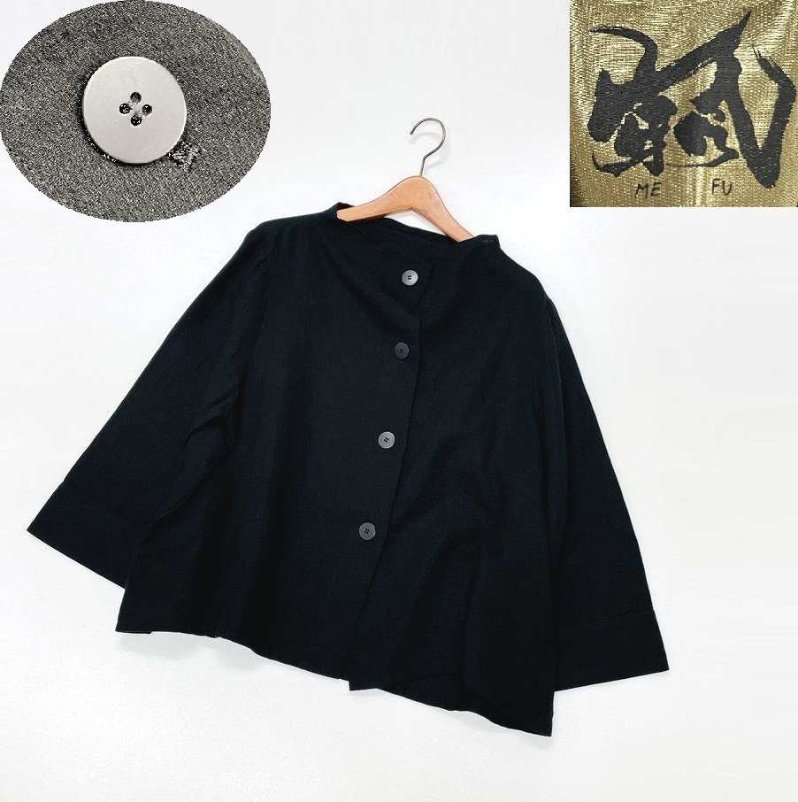 - 【38】芽風 ブラック 綿麻ジャケット レディース カジュアル 通勤 羽織り 大人可愛い 日本製デイリー コットン マツオ センソユニコ めふう