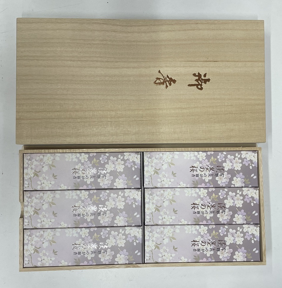 - 訳あり 日本香堂 宇野千代のお線香 淡墨の桜 サック6入 桐箱入り