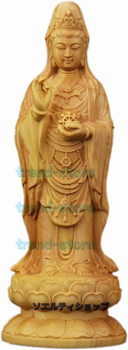 - 人気推薦★仏像 木彫観音 観音菩薩立像 高級天然ツゲ木彫り 手彫り仏像 置物