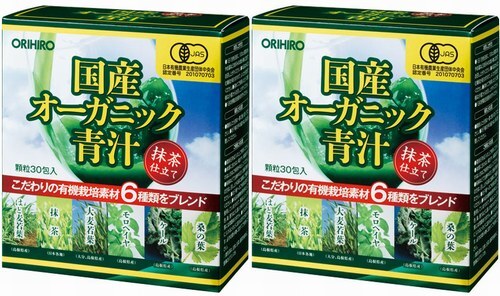 - 2箱(60包) オリヒロ 国産オーガニック青汁 2.0g×30包 国産の有機素材6種類を飲みやすくブレンド。抹茶で仕上げた美味しい青汁です。