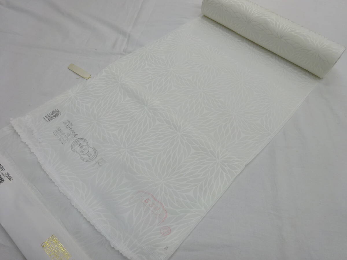 - 新品・正絹・反物★京都丹後ちりめん★白長襦袢(白長地袢)★むじな菊柄です