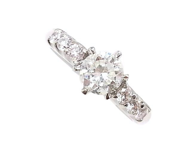 - g19398 Pt900 D1.037ct(I/I-1/GOOD) FD0.40ct リング USED 美品 7.4g #14 ソーティング付