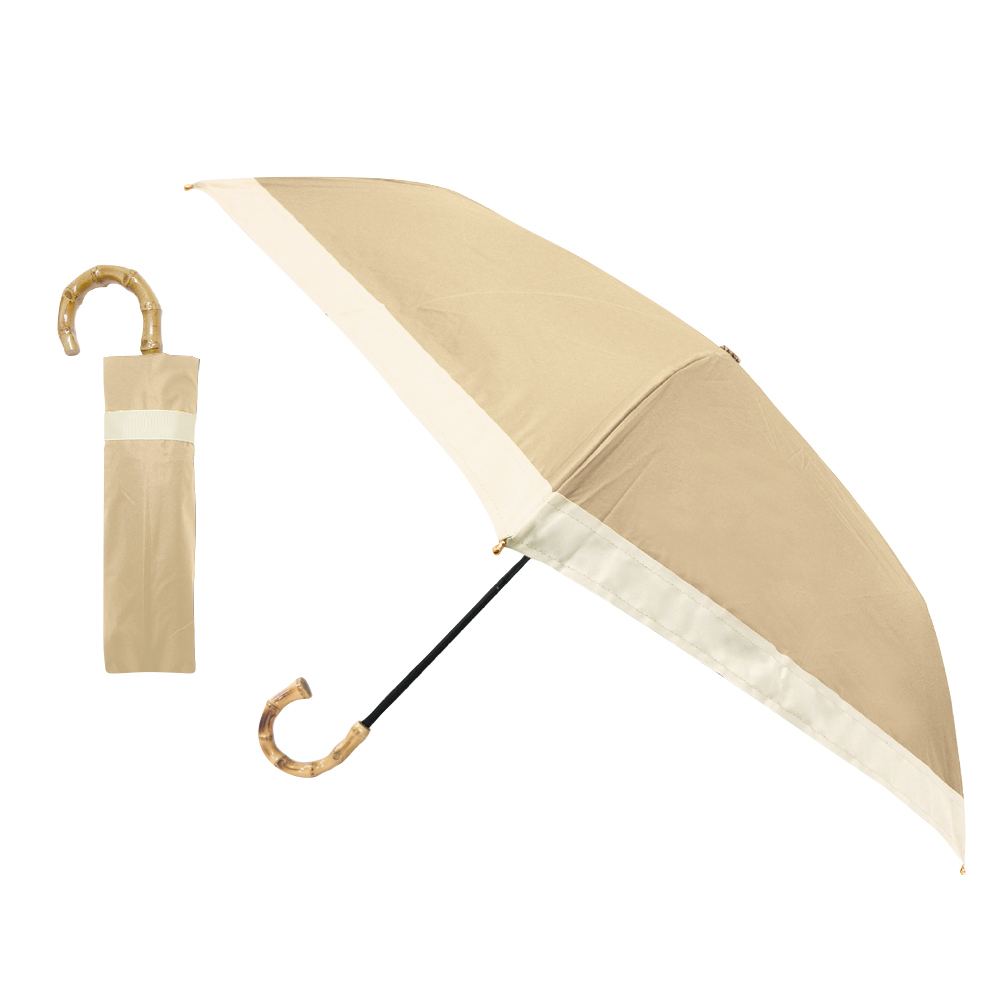 - まるいシルエット 完全遮光 薄型 3段 折りたたみ傘 晴雨兼用 グログラン ラテベージュ 親骨50cm 広げたサイズ直径89cm