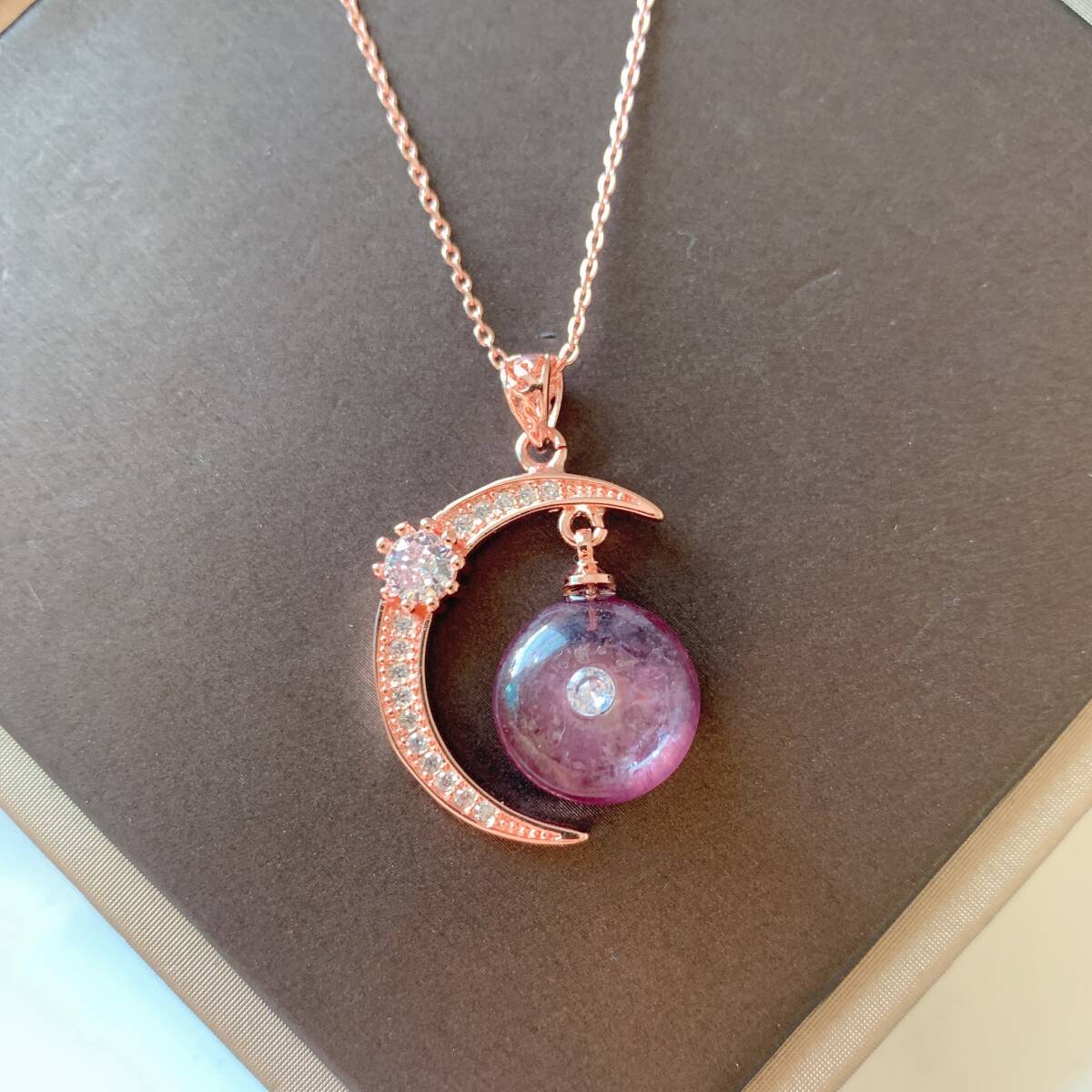 - ◇パープルマイカ◇ネックレス◇ペンダント◇平安扣◇お守り◇ドーナツ形◇パワーストーン◇天然石◇巾着袋付き◇プレゼントにも030P61813