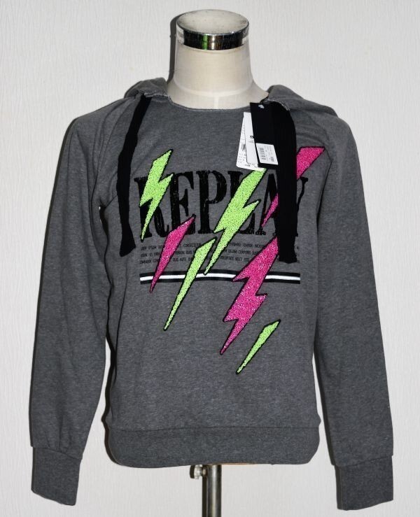 > ★新品★定価28600円★REPLAY★リプレイ★デカロゴ入り★カッコいい稲光デザイン&スパンコール着心地良いパーカ★XS★