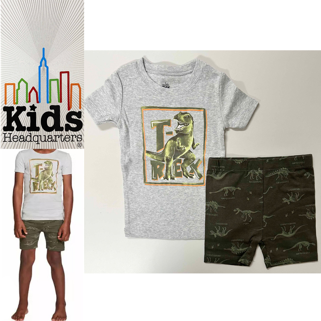 - 新品 上下 セット 110 ★ コストコ ボーイズ 半袖 パジャマ Tシャツ ショートパンツ 5T ディノ 恐竜 レックス Kids Headquarters コットン