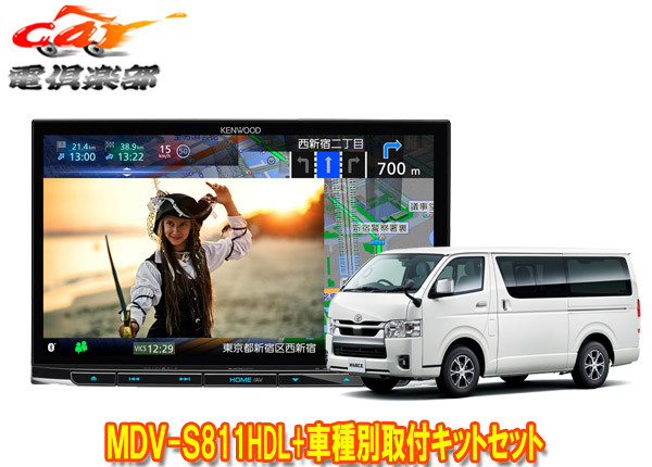> 【取寄商品】ケンウッド8V型彩速ナビMDV-S811HDL+KIT8-K19HIハイエース(H25/12~・スーパーGL標準ボディ)用取付キットセット