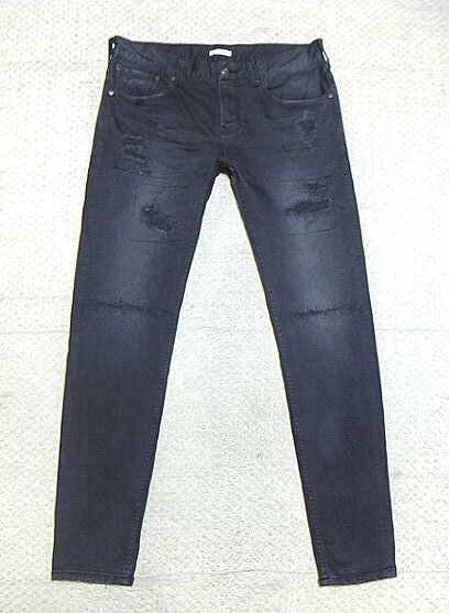 - 極上:BAYFLOW(ベイフロー).リペア加工 ストレッチ スリム ブラック デニム 5(33-34/チェーンステッチ/ロック系/パンク/W90股下80 raleigh