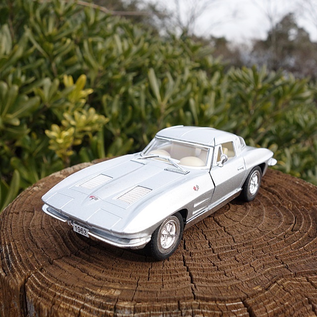 - 【送料450円】 コルベットスティングレイ ミニカー 1/36 シルバー色 1963年式 シボレー C2型コルベット アメ車