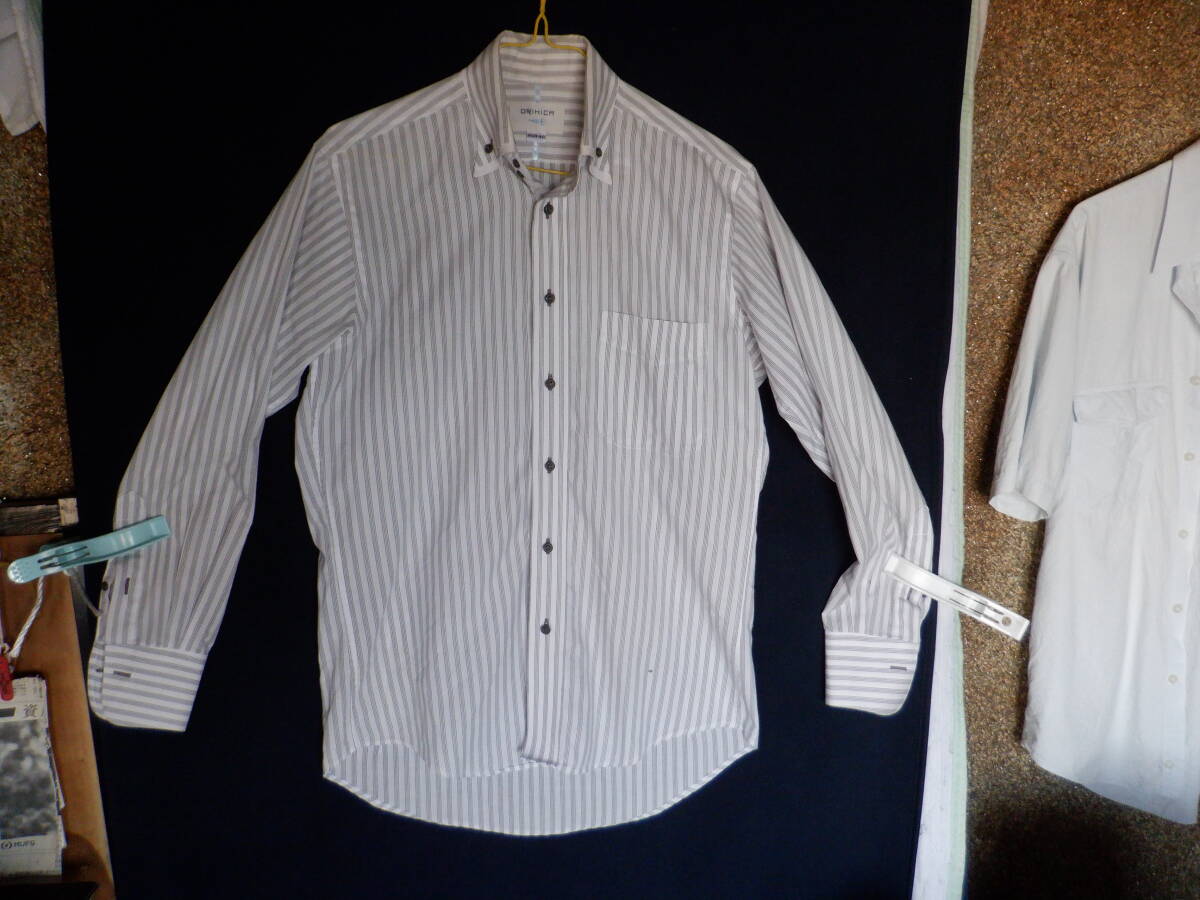- ORIHICA (オリヒカ) ドレスシャツ オフホワイトにストライプ ボタンダウン Mサイズ 39ー84 美品