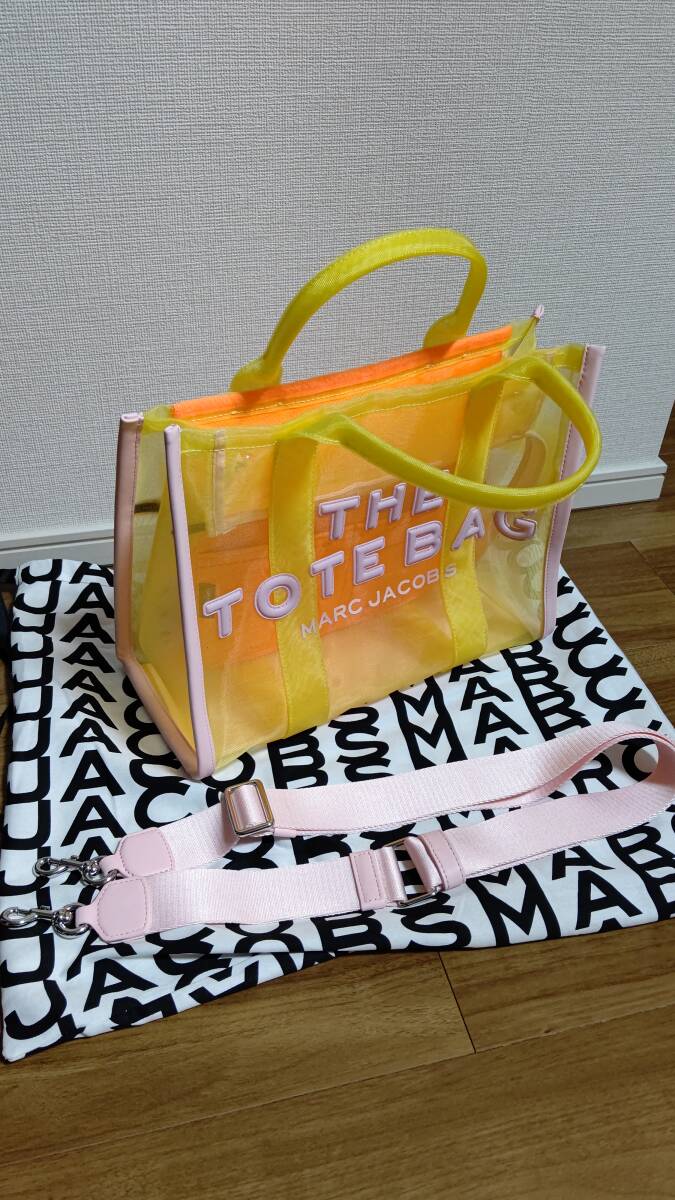 > 28000円★大丸百貨店購入品 未使用品 MARC JACOBS マークジェイコブス メッシュトートバッグ ショルダー付き イエロー×ピンク 2WAY使用可