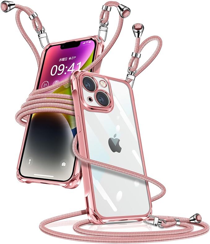 - iPhone 14 Plus ケース クリア ショルダー iPhone14plus スマホケース アイフォン14plus カバー 肩掛け 斜めかけ 縄掛けケース 透明 薄型