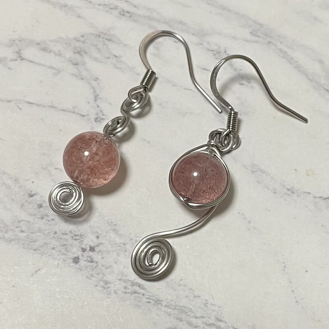 - A6. 天然石 ピアス ピンクエピトード ハンドメイド サージカルステンレス アレルギーフリー ニッケルフリー アシンメトリー