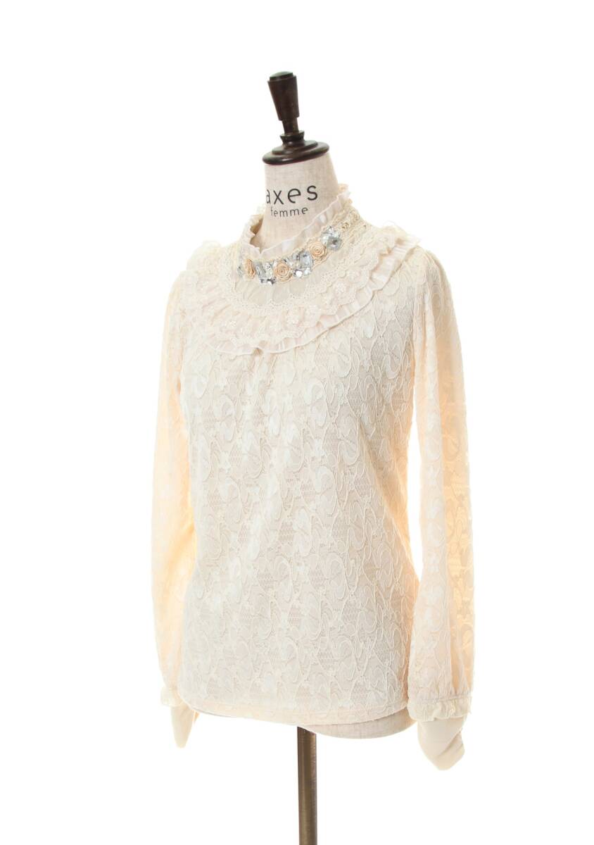> 496◇首元付属使いレースプルオーバー 生成り キナリ axes femme アクシーズ ファム TS33X57