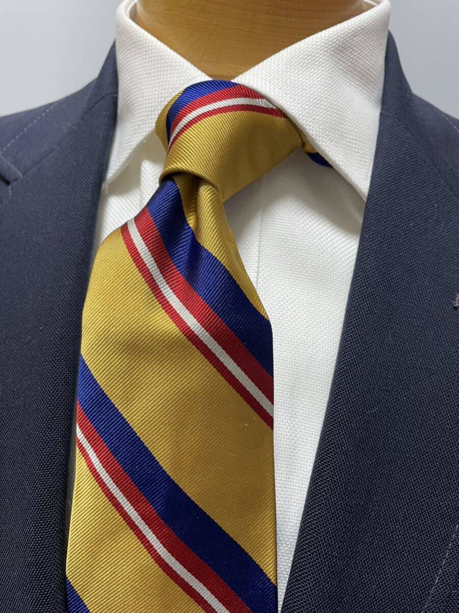 - 【美品】ラルフローレンレジメンタル柄 ネクタイ 大剣約10cm イエロー基調 イングランド製生地日本製