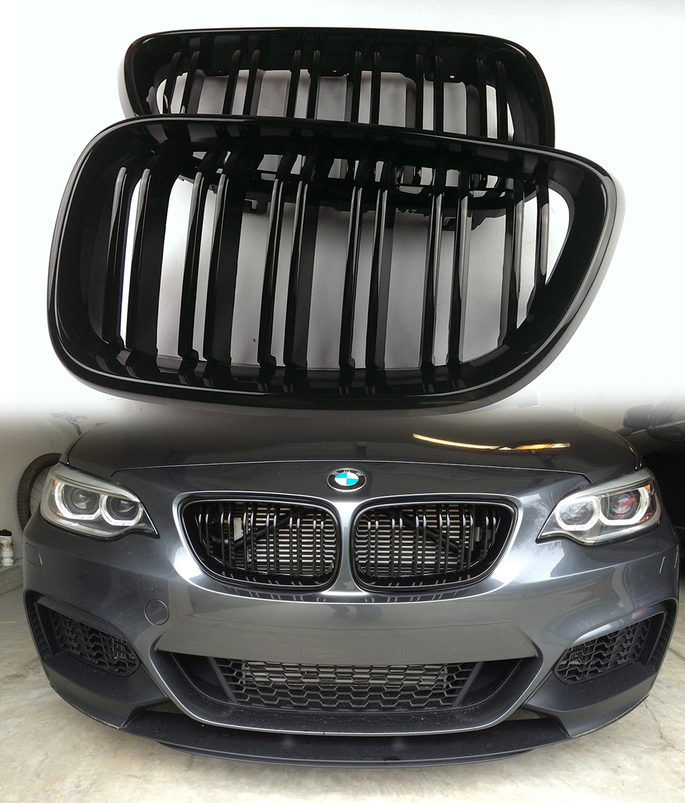 - 最上級品質▲BMW 2シリーズ BMW F22 F23 F87/M2 フロントグリル 光沢黒 艶有黒 ダブルバー セット ABS製 2014-2020