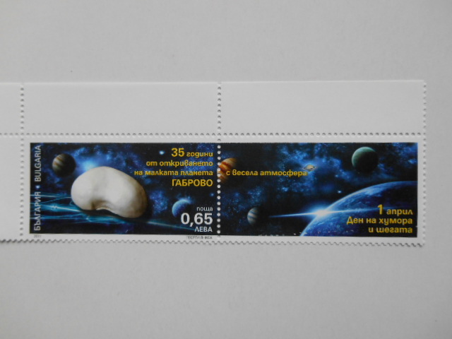 ブルガリア 切手 2011 小惑星 ガブロヴォ 発見 35周年 エイプリルフール ユーモアとジョークの日 49682011年発行のブルガリアの切手「小惑星「ガブロヴォ」発見35周年 エイプリルフール(ユーモアとジョークの日) 」です。