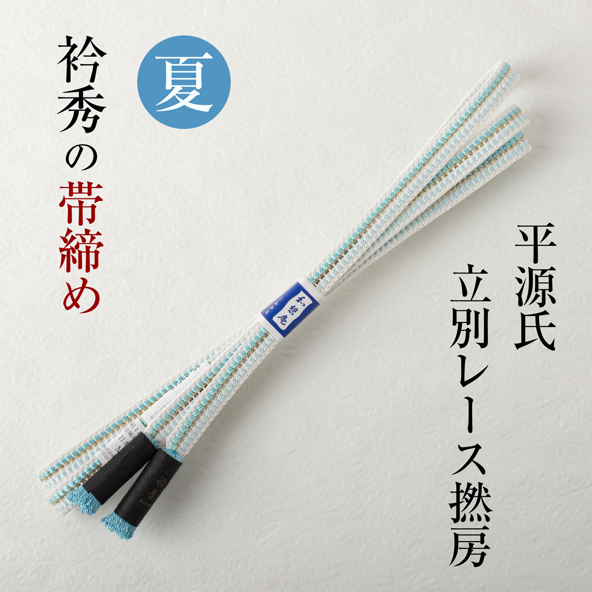 - 【襟の衿秀 帯締め】(平源氏組立別レース 水色×空色)夏物 帯〆 撚り房 日本製