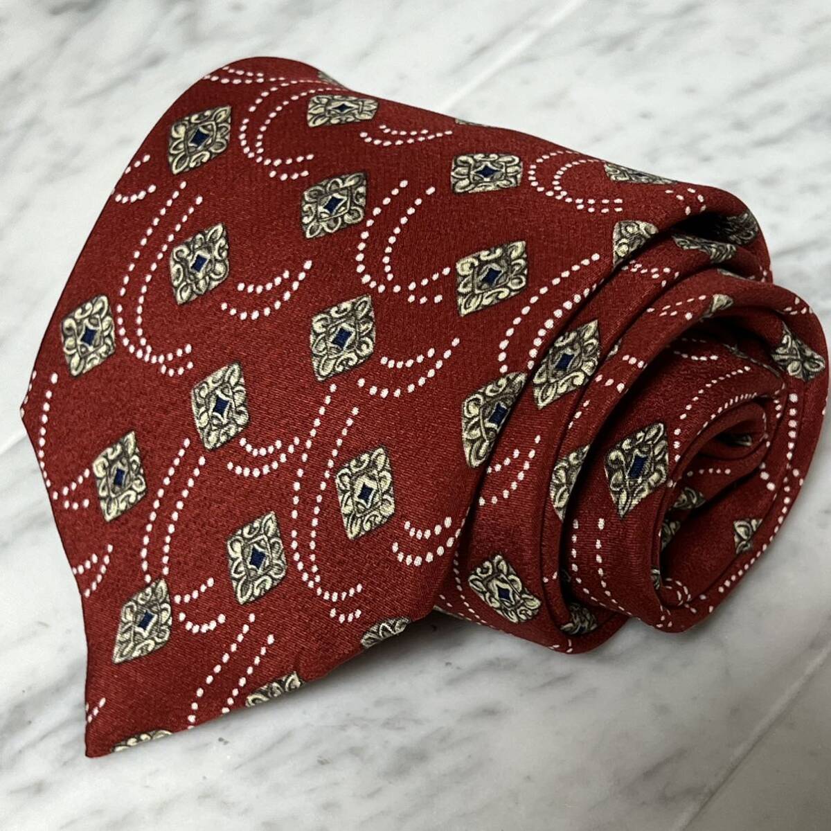 - 【美品】 999円~ Christian Dior ネクタイ レッド 小紋 総柄 (R2)
