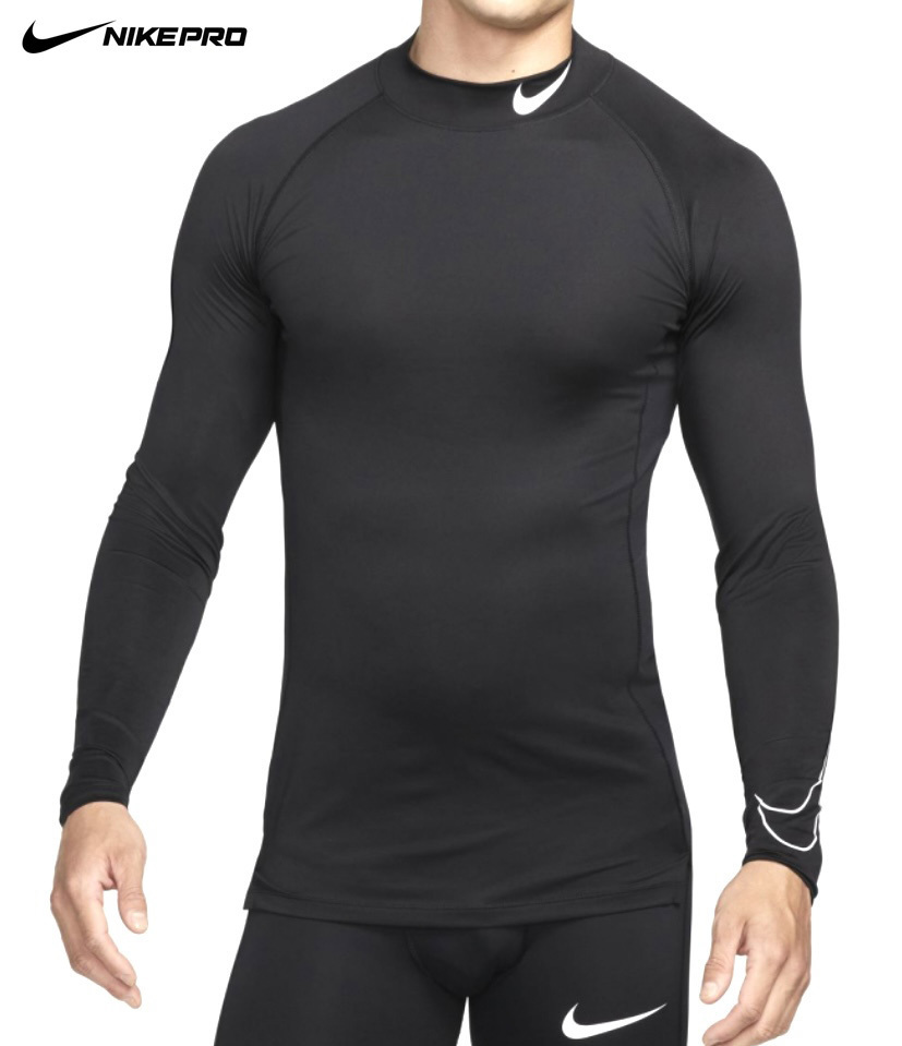 > 【新品】ナイキ プロ モックネック 長袖【987-010:黒】XXL インナー コンプレッション トレーニング ジム ラン 陸上 ゴルフ NIKE PRO