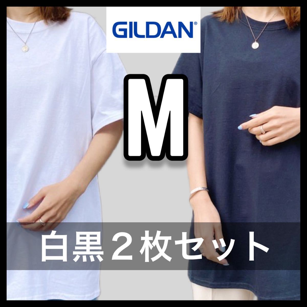 > 新品未使用 ギルダン 6oz ウルトラコットン 無地半袖Tシャツ 白 ホワイト 黒 ブラック2枚セット Mサイズ ユニセックス GILDAN