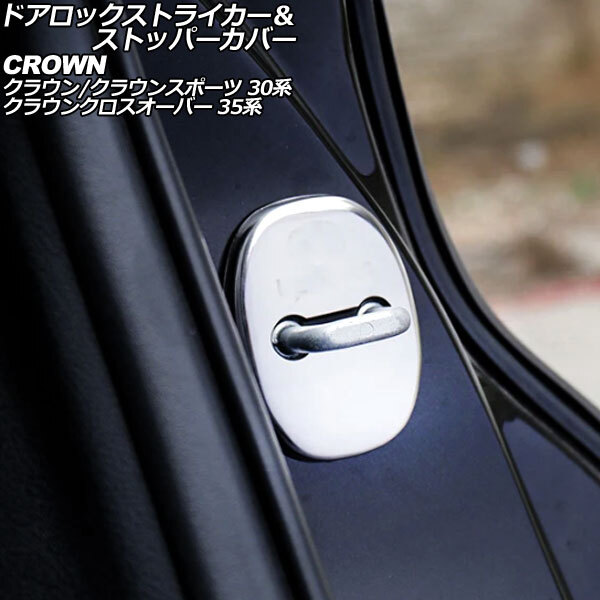 - ドアロックストライカー&ストッパーカバー トヨタ クラウンスポーツ 30系 2023年11月~ シルバー ステンレス/ABS製