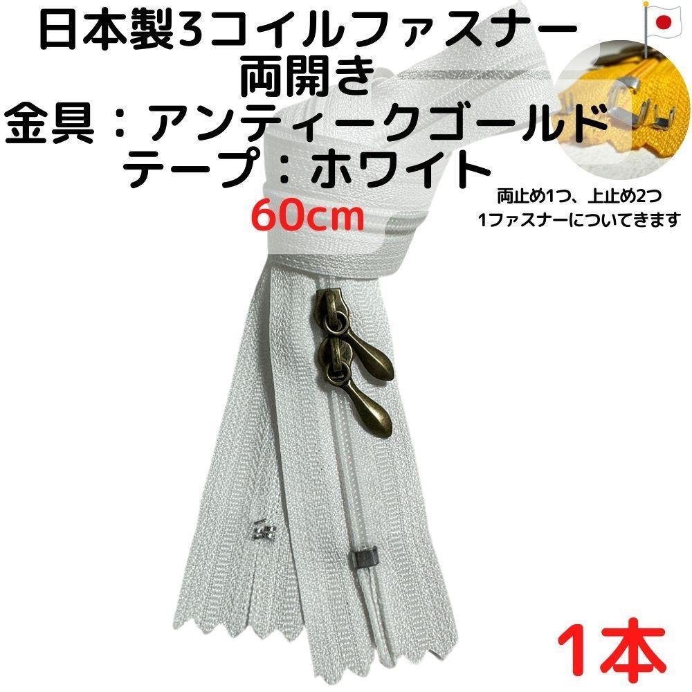 - ファスナー60cm両開き1本アンティークGxホワイト【CFSA60W1】