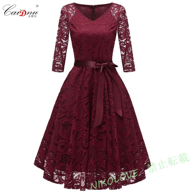 - 新品秋物 ドレス パーティードレス レディース 結婚式 七分袖 かわいい ワンピース L LD018