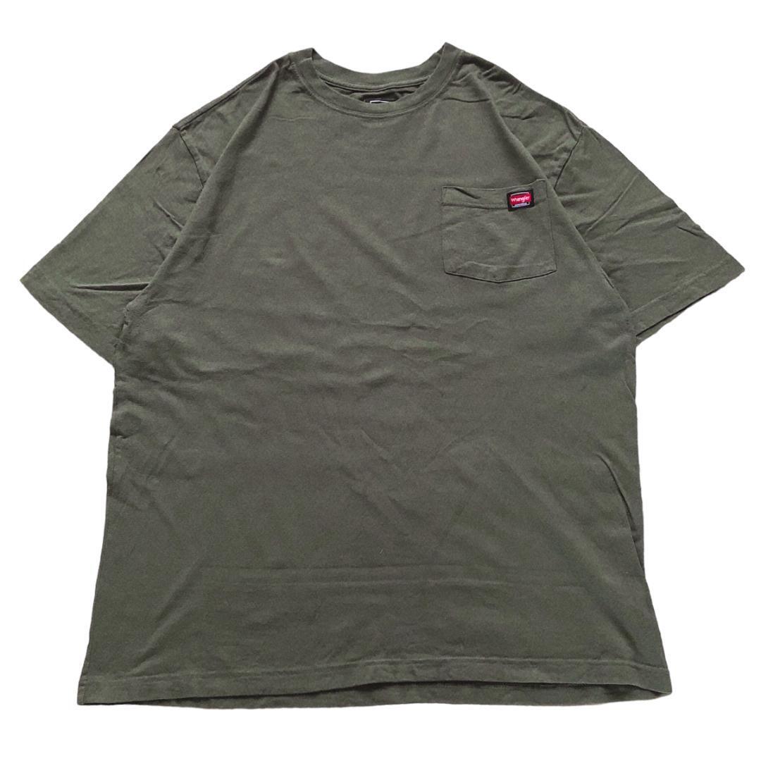 > ラングラー 半袖Tシャツ ロゴパッチ 胸ポケット カーキ 夏物古着 m25① XL相当