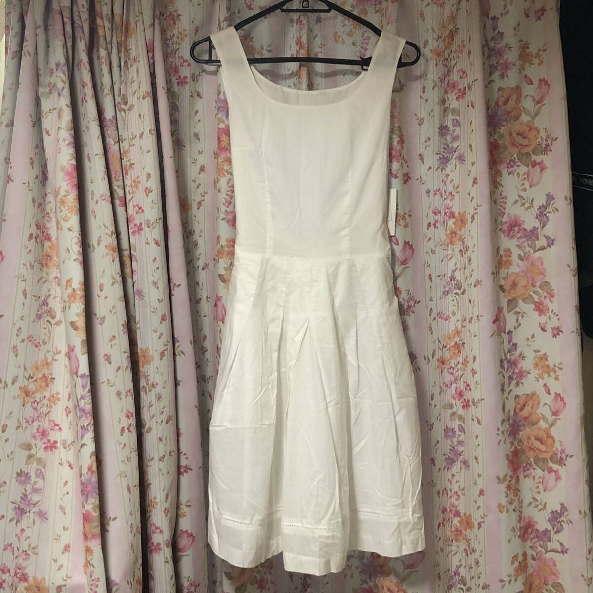 > ◎未使用保管品 ブルローネ ノースリーブ ワンピース ホワイト サイズ11AR 綿100% Burlone タグ付き