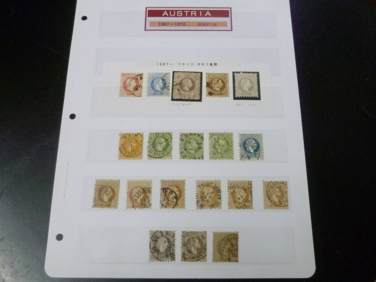 > 24 M №12 オーストリア切手 クラシック 1867-72年 SC#7-33 7種 計19枚 使用済(25kr1種未使用OH)・VF 【SC評価 $525】 ※説明欄必読