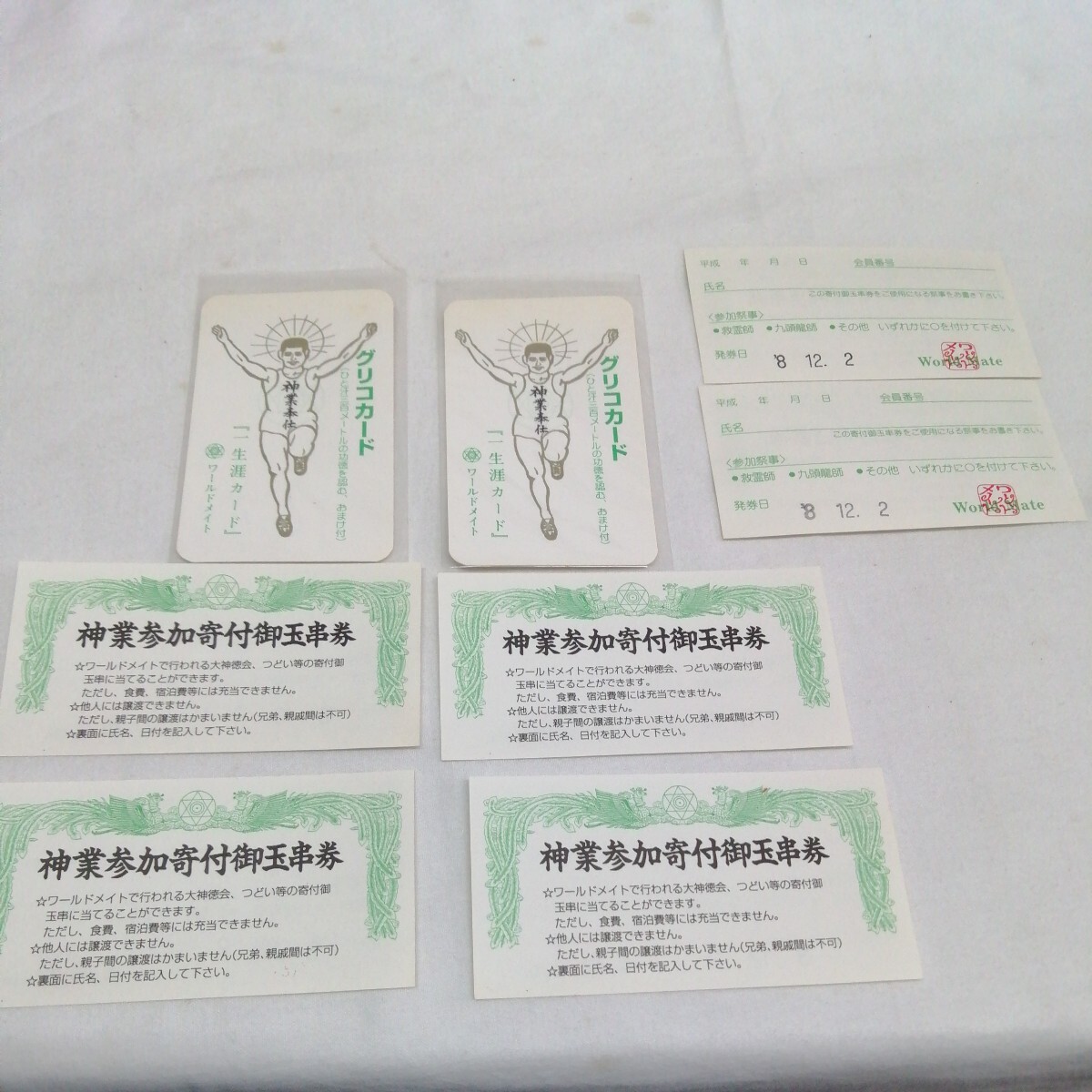- 計8枚 ワールドメイト 一生涯カード グリコカード 神業参加寄付御玉串券 大神徳会 カード 宗教 記念に 送料185円可能
