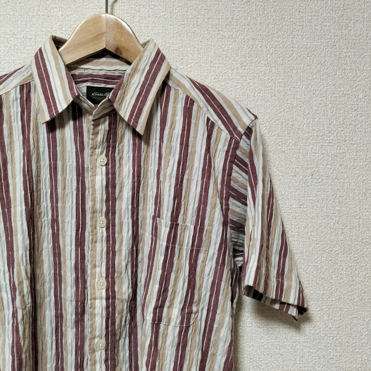 > 美品☆Eddie Bauer シアサッカー コードレーン 半袖 シャツ トップス マルチカラー ストライプ メンズ サイズS エディーバウアー 古着 USED