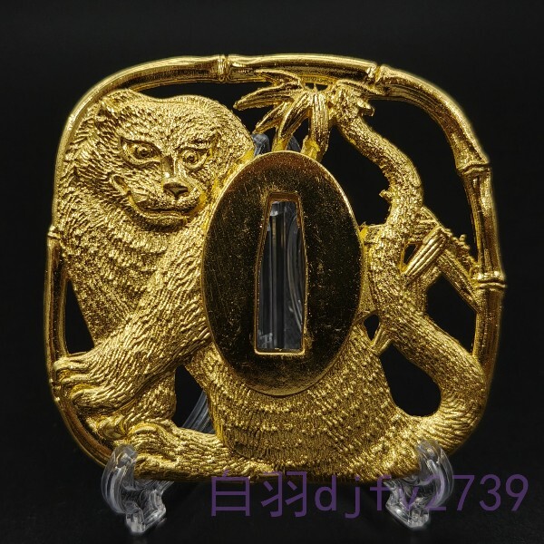 - SY81 日本刀装具 刀鍔 豹図 合金製 現代品 つば ツバ 刀剣美術 重さ約86G 厚さ約6mm