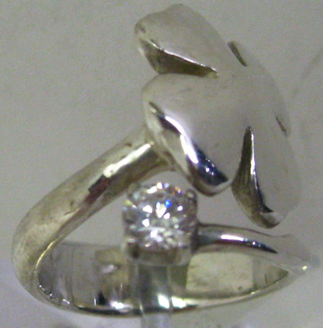 - 【東京 谷中 質屋おぢさん】シルバーSILVER リング 幸運の四つ葉のクローバー ジルコン入サイズ #10