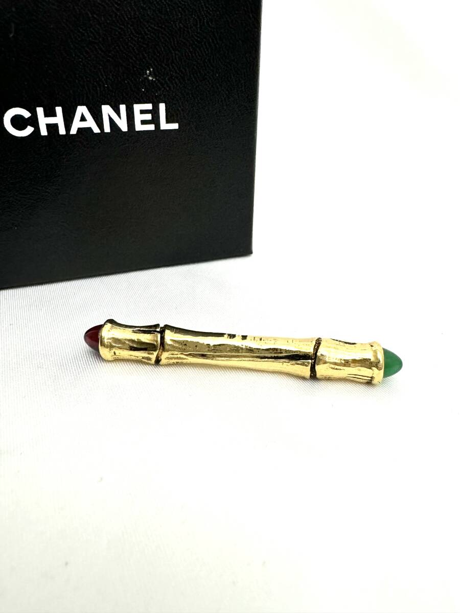 > 6G1402【本物保証】シャネル ブローチ バンブー スティック ゴールド グリポア レッド グリーン カラーストーン 102 vintage CHANEL