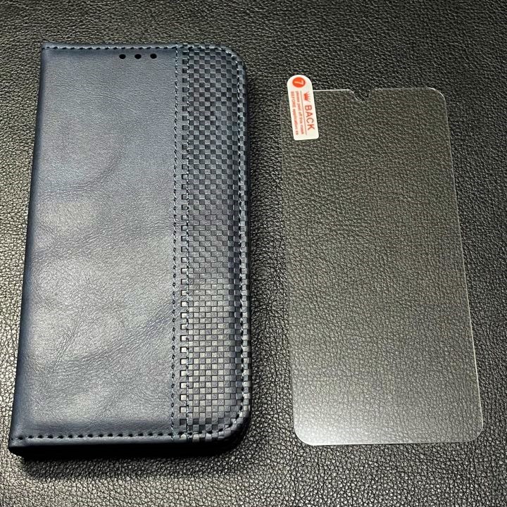 - 【2点セット】AQUOS wish/wish2 レザーケース 「ネイビー」+強化ガラス保護フィルム 9H 耐衝撃 カバー スマホケース アクオス ウィッシュ