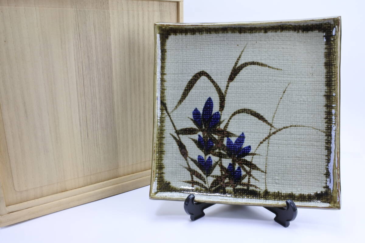 > ☆☆☆ 皇后陛下 常陸宮妃殿下御買い上げ記念 角形皿 宇佐美せんべい店 桐箱付 サイズ:24cmx24cm 高さ:3cm貴重記念品