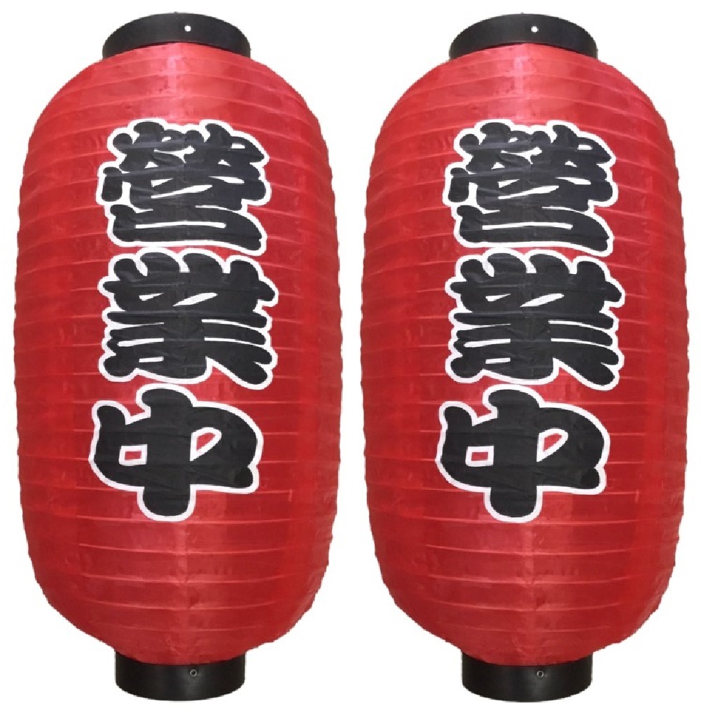 - 赤提灯 営業中 2個セット 赤ちょうちん お祭り 看板 文化祭 長提灯 店先 屋台 飲食店 店舗 提灯 吊り下げ