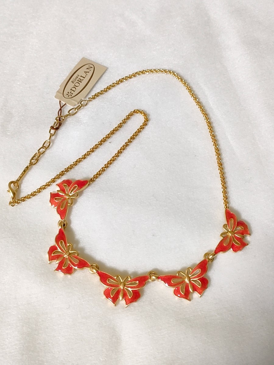 - 新品タグ付き D'ORLAN ドーラン ネックレス エナメル 蝶 レッド