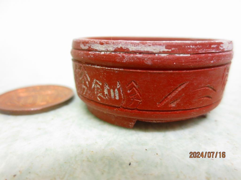 - [緑の市場] 小品盆栽鉢 泥珠 模様入朱泥丸鉢 4.2㎝ (J093)送料無料/有料(ゆうパック)選択可※無料はメール便ポスト投函