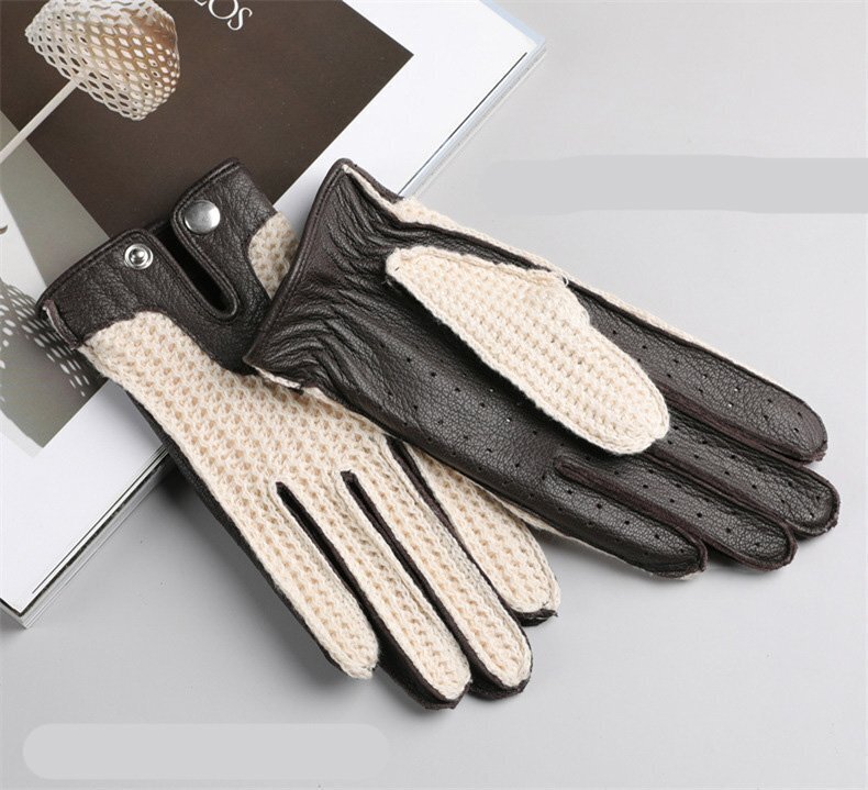 - バイクグローブ手袋 オートバイ手袋 鹿革手袋 自転車手袋 耐摩耗 ニットメッシュ通気 男女兼用 サイズ選択可能 ブラウン