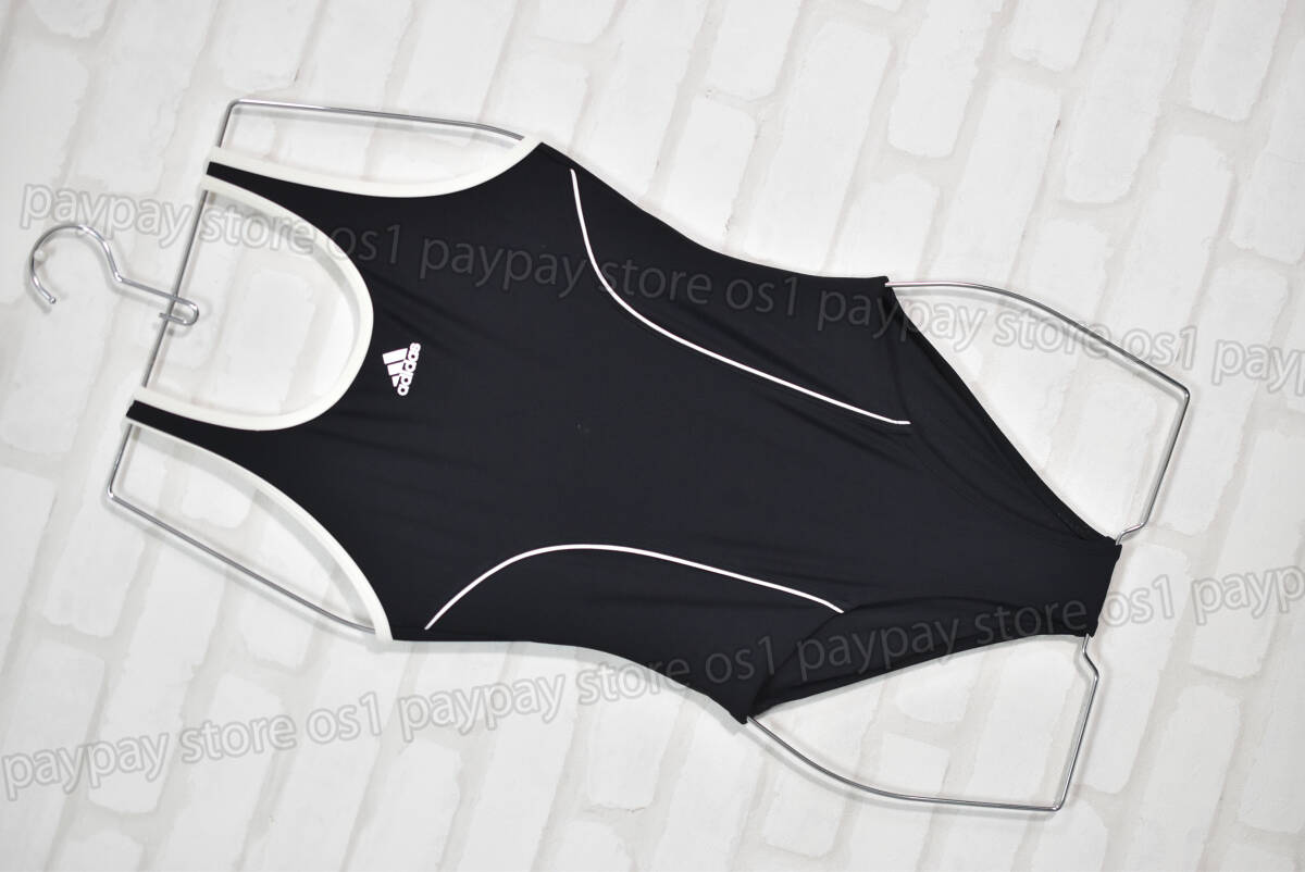 - adidas アディダス X46335 白パイピングワンピース水着 ブラック サイズ152(M)