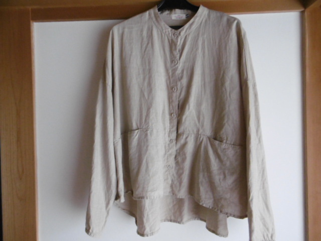 - 麻/リネン 長袖ジャケット/ブラウス/チュニック 羽織り LLサイズ 麻100% 日焼け/冷房対策 ベージュ