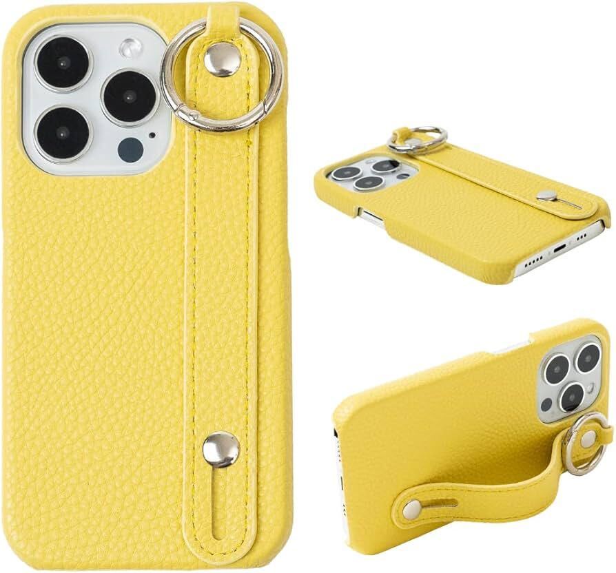 - d-640 SUNNY&GO iPhone14 Pro ケース ストラップ付き スタンド スマホ シンプル カバー アイフォン レザー (iPhone13mini, レモンイエロー)